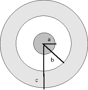 | The potentials \(\phi_1, \phi_2, ...\) of several conductors is a linear function of charges,\(Q_1, Q_2,...,\) on the conductors. Thus \[ p_j= \sum_k p_{jk}Q_k \] Find the electrostatic energy of concentric spheres shown in figure below, having charges \(Q_1, Q_2\) by finding the matrix \(\begin{pmatrix} p_{11}, p_{12} \\ p_{21},p_{22}\end{pmatrix}\). Answer:\( \frac{1}{8\pi\epsilon_0}\Big[\Big(\frac{1}{a}-\frac{1}{b} + \frac{1}{c}\Big) Q_1^2 + \frac{2Q_1Q_2}{c} + \frac{Q_2^2}{c}\Big]\) | 09:34:29![]() |