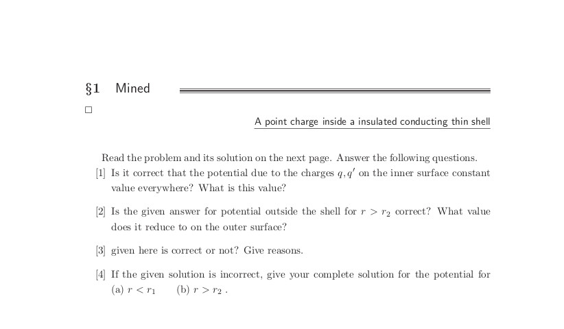 Mined/EM-04001 :: Point Charge inside a conduction shell