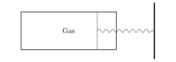 | Consider a gas contained in a cylindrical enclosure with a piston attached to a spring ( spring constant K ) Initially the gas is at 200 kilo Pascal ( kPa) and occupies a volume of $0.1 m^3$. The atmospheric pressure is 100 kPa . The gas is heated until the volume is doubled and the final pressure is 500 kPa. The spring exerts a force proportional to the displacement from its equilibrium position. Calculate the work done by the gas |