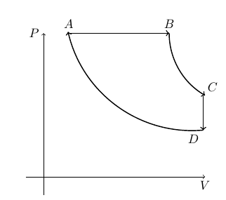 CD consists of two adiabatic processes and an isobaric process and an isochoric process of a box of volume V containing perfect gas as shown below