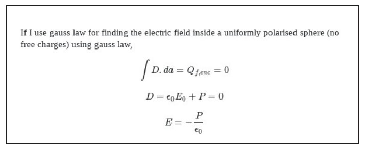a uniformly polarized sphere. The following answer was received.