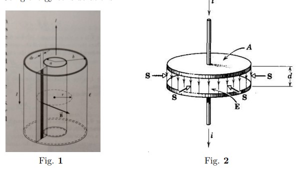 - Show the rate $\rho$ at which energy flows into the resistor through its cylindrical surface, calculated by integrating the Poynting vector over this surface, is equal to the rate at which Joule heat is produced, i.e. \begin{equation*} \int\vec{S}\cdot\vec{dA}=i^2R \end{equation*}