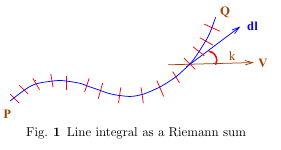 The curl free property implies,(A theorem in vector calculus), there exists a function $\phi$ such that \begin{eqnarray} \vec{E}=-\nabla\cdot\phi \label{Eq2} \end{eqnarray} If we know the electric field, the electric potential \(\phi\) can be computed by considering line integral \(\int_P^Q\vec{E}\cdot\vec{dl}\), defined as a limit of a Riemann sum \begin{eqnarray} \int_P^Q\vec{E}\cdot\vec{dl}&=&\Sigma_k E_k{dl}_k\cos\theta_k \label{Eq3} \end{eqnarray} $\theta_k$= angle between tangent and $\vec{E_k}$