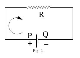 • ˆ once the charges reach the negative terminal Q, the battery pushes them from lower to higher potential. After which the electrostatic forces take over and the charges move from \(P\) through the circuit to \(Q\). ˆ