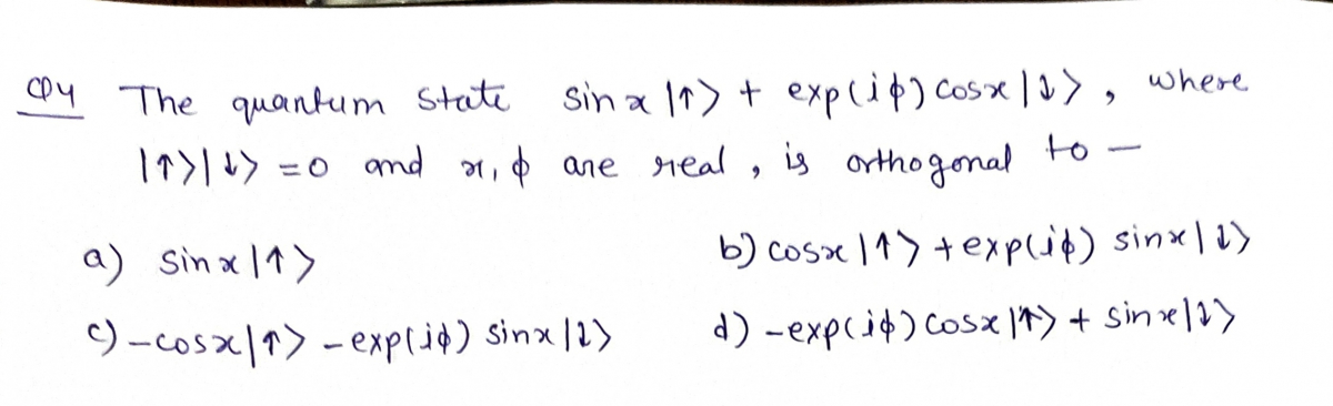 \begin{equation} | A\rangle = \cos x | \uparrow \rangle + \exp(-i\phi)\sin x | \downarrow\rangle \end{equation}