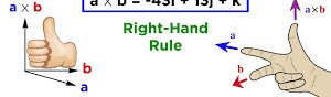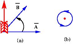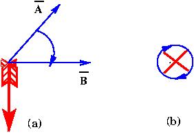 | If an anticlockwise rotation aligns A ~ with vector B, ~ as in Fig.1(a), the cross product is out of the plane of the paper. | If a clockwise rotation aligns A ~ with vector B, ~ as in Fig.1(b), the cross product is into the plane of the paper. |