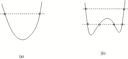 A few potentials are drawn in figure below. The turning points are marked as open circles for energies indicated by dashed horizontal lines.