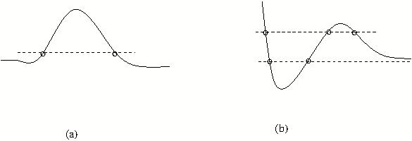 For potential in Fig 1 (a), there are two turning points for all energies. The potential in \Fig1(b) has two turning points for some energies and four turning points for some other energies. Fig below shows a barrier with two turning points for energies $E>0$ and below the barrier height $V_0$.\\