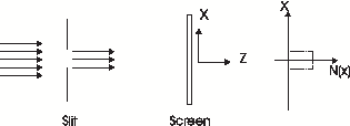 and $L$ is the distance of the screen from the slit. The waves not only reach the point $x = 0$, but a significantly large part of the wave is received for large values of $x$. If the intensity of the incident wave is reduced, one would continue to get the same pattern, even for arbitrarily low values of the intensity of the incident waves.