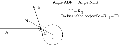 4. Find the differential cross section ($\frac{d\sigma}{d\Omega}$) and total cross section of the scattering of a spherical particle of mass m with radius $R_1$ with another spherical particle of infinite mass of radius $R_2$ and is at rest at the origin. Treat the collision as elastic ( see figure).